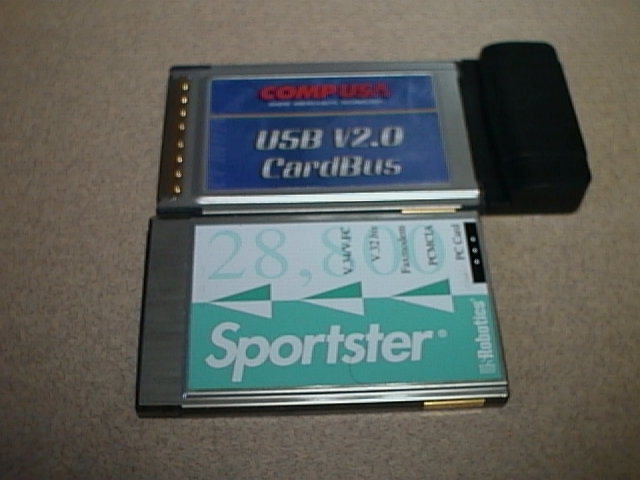 Note the thicker flange on the CardBus card. This prevents it from going into a PCMCIA socket.